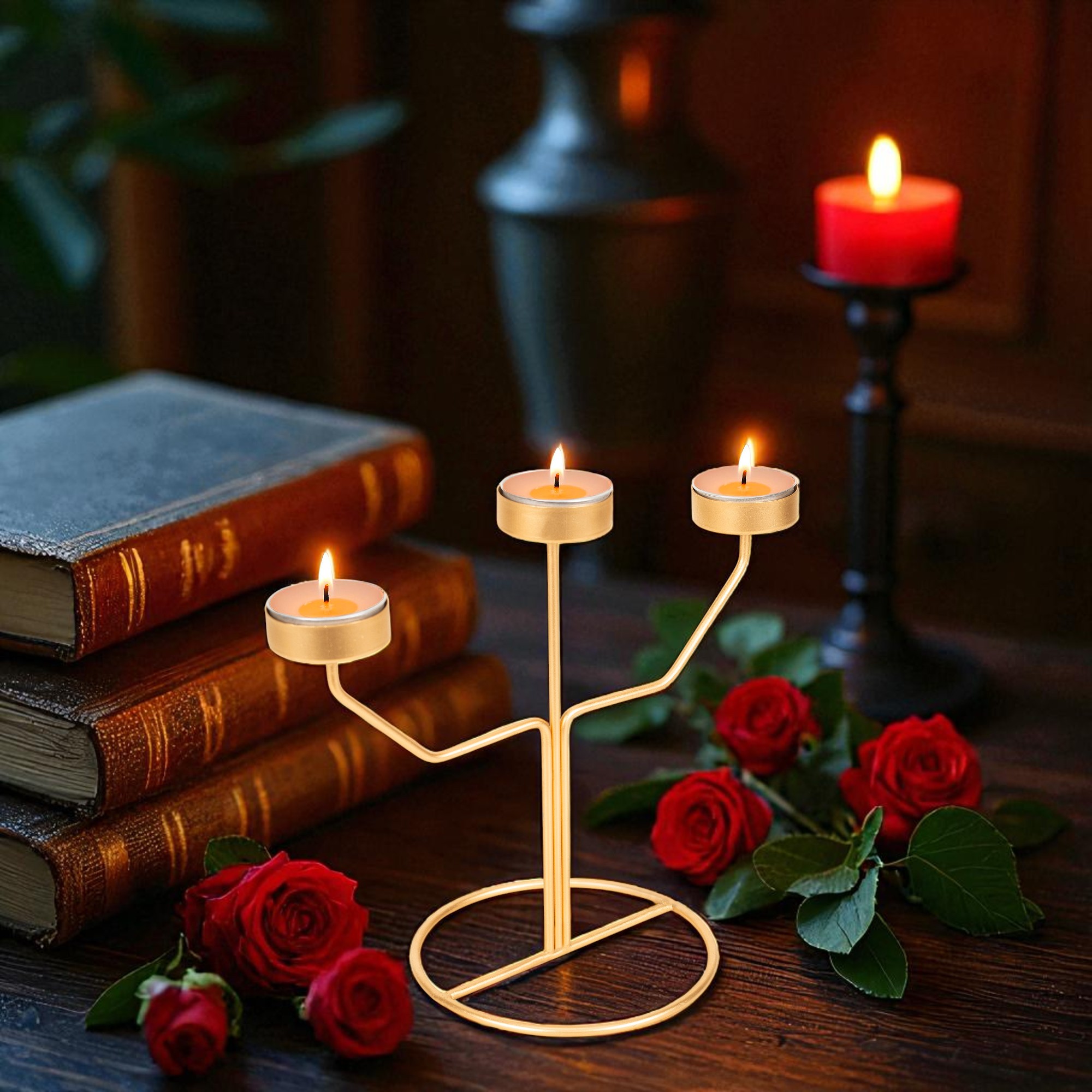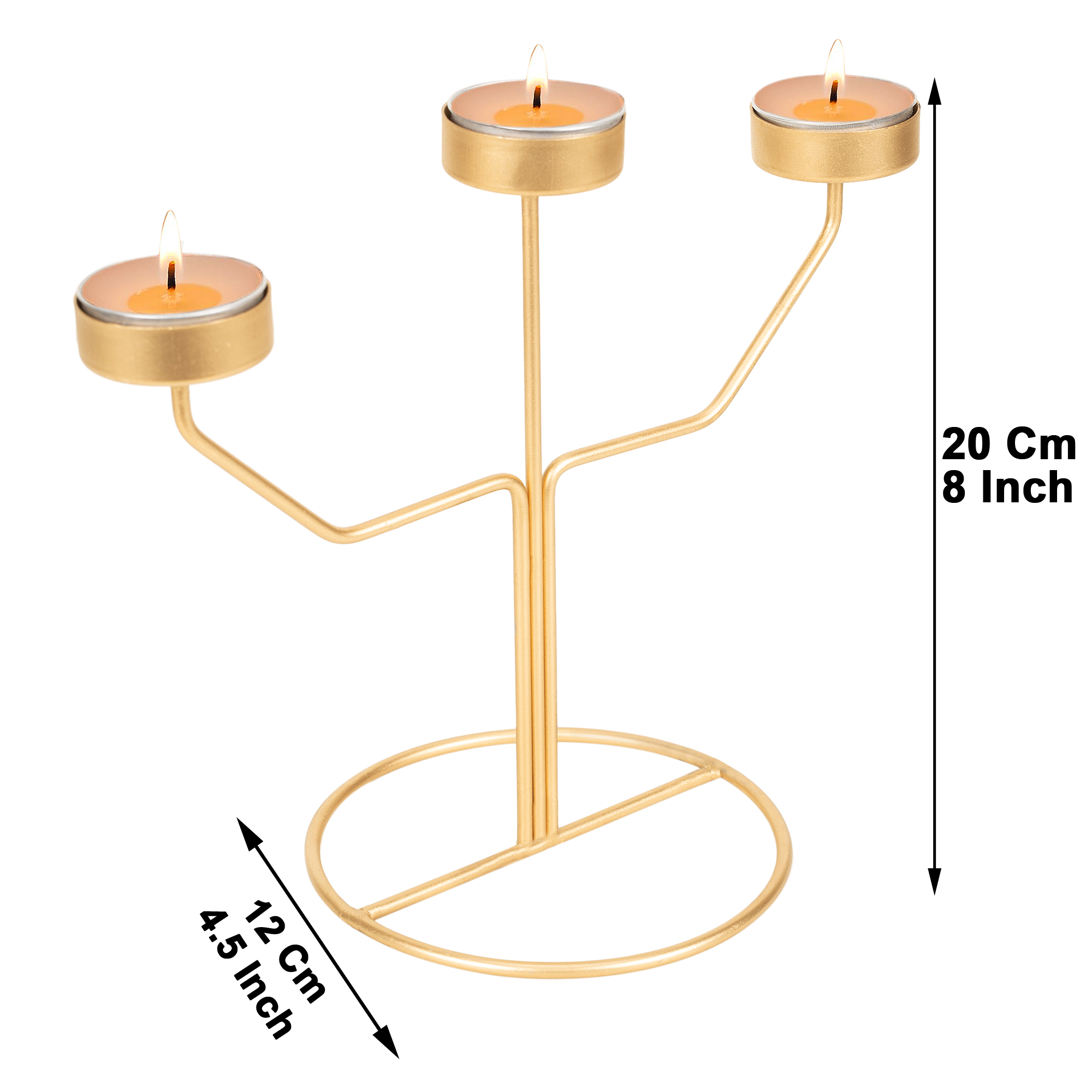 Adorn your space with this elegant handcrafted designer T-light stand, paired with 3 complimentary T-lights. The golden powder-coated finish adds a refined touch, and the free-standing structure fits beautifully in any setting. Ideal for enhancing ambience during festivals, dinners, or special occasions.