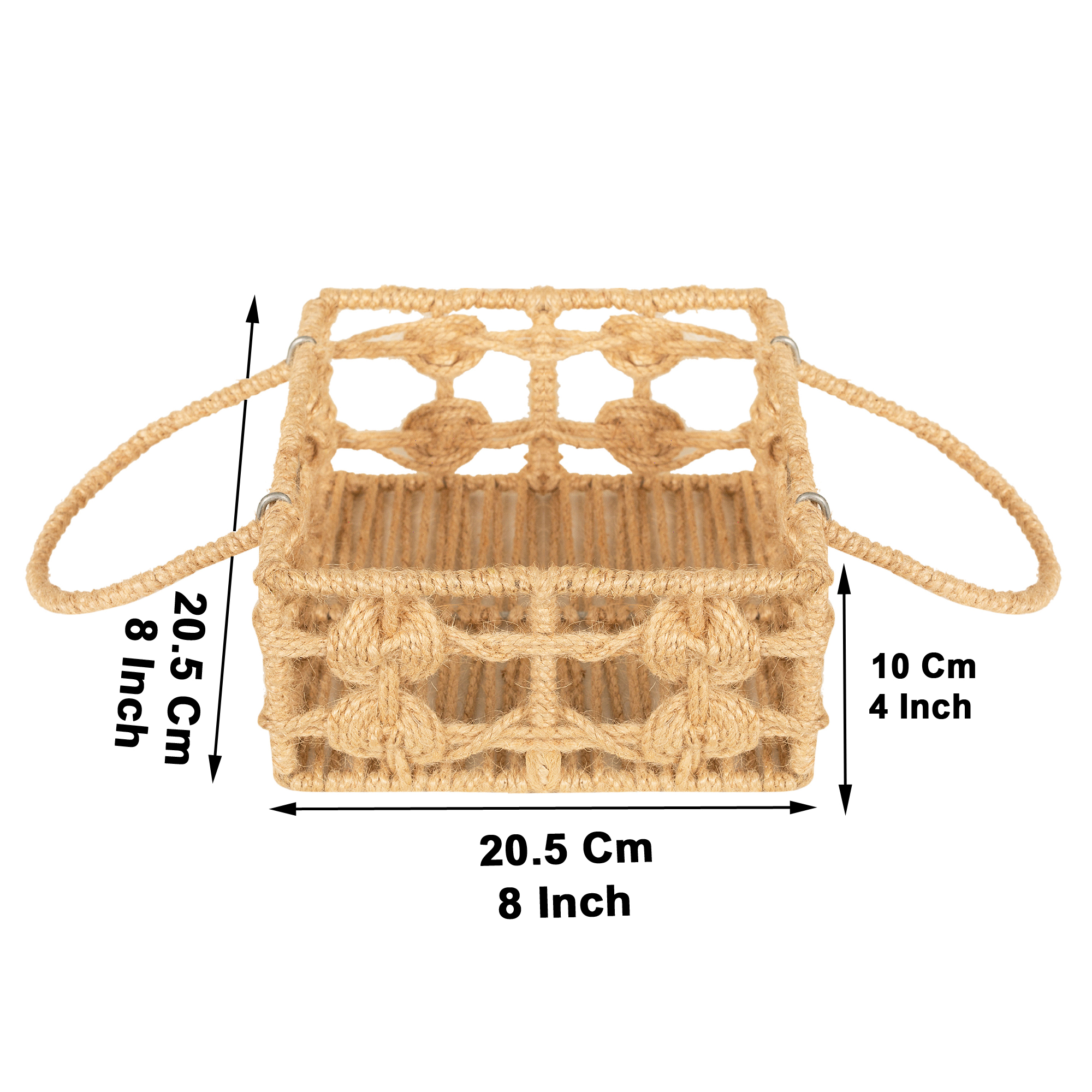 Handcrafted from natural jute, this basket comes with a convenient handle for easy carrying. Perfect for gifting or pooja, it has ample space to organize items while adding a rustic, elegant touch.